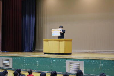 校長先生と児童会代表のお話を、とてもよい姿勢で聞くことができていました。