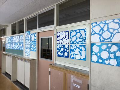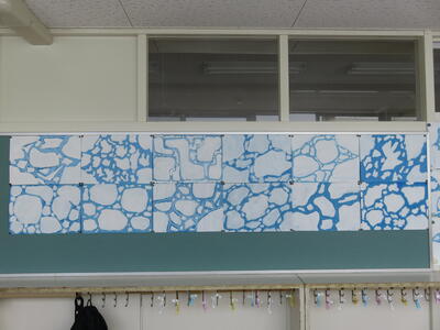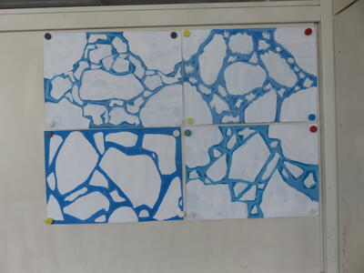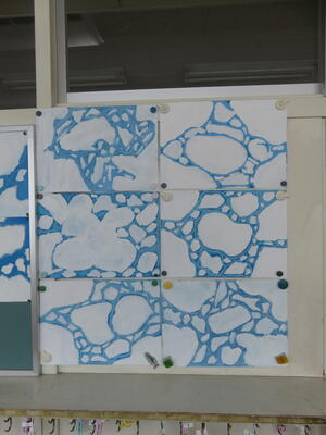 紋別市に流氷が来ました。図工で流氷の絵を描きました。