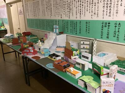 図工で紋別市の観光施設を作りました。大がかりな作品で大変でしたが、ダイナミックに仕上がりました。