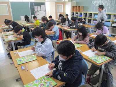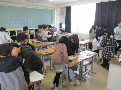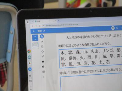 4月9日(木)6年1組・6年2組 投稿: 管理者 (16:40) ○6年1組 6時間目 理科の授業のようす 地球にはどのような自然が見られるか?クロームブックに入力していました。 リアルタイムで友達の考えを参考にして、考えを広げていました。 ○6年2組 6時間目 家庭科の授業のようす 自分の1日の生活時間について考えていました。 あちこちで友達との交流。 みんな、真剣にプリントに書き込んでいます。