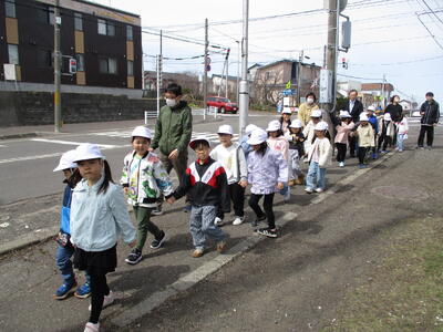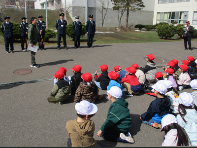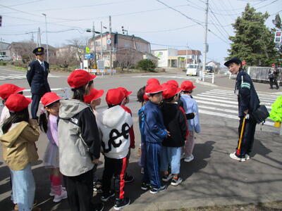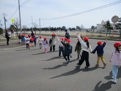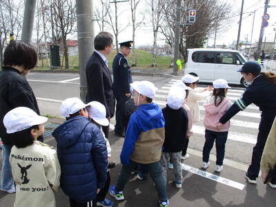 4月17日(金)1年生 「青空教室」 投稿: 管理者 (04/17) ○1年生 2時間目 「青空教室」のようす 交通安全指導員の皆さんに来ていただきました。 横断歩道の渡り方を、丁寧に教えてもらっています。 左右を確認、手を挙げて道路を渡ります。 ご協力いただいた皆様、本当にありがとうございました。
